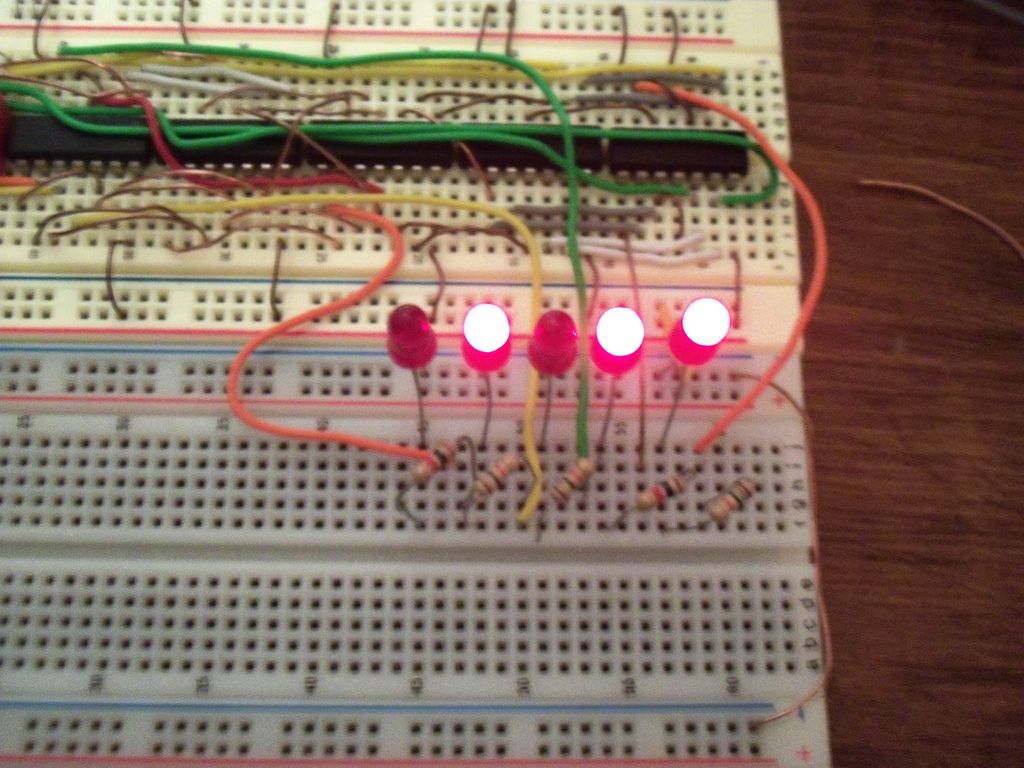with switches for inputting addends, lights for outputting sums, and a 74xx