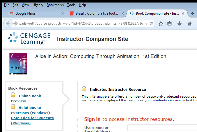 Obtaining the Alice programs that appear in the textbook - go here and on the resulting page:
