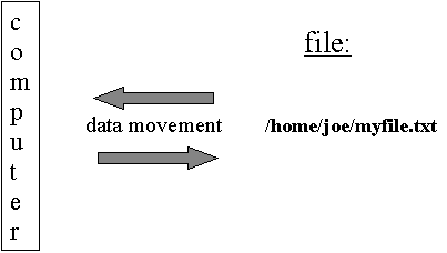 And second, the commands and operations that accept files for processing (cp, cat, sort, redirection > and piping | ) will also accept devices. Because everything is a file. Here's a file, depicted as a data repository: