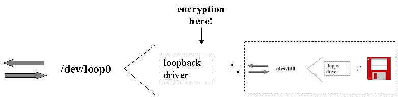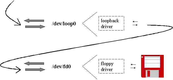 You might wonder what's the point? The floppy already has a perfectly good name. What good is having another one? The file is already a file. What good is treating it as a device? In the first case the advantage is that the loopback driver offers the option of dynamic encryption of data passing through it, while the regular hardware drivers don't.